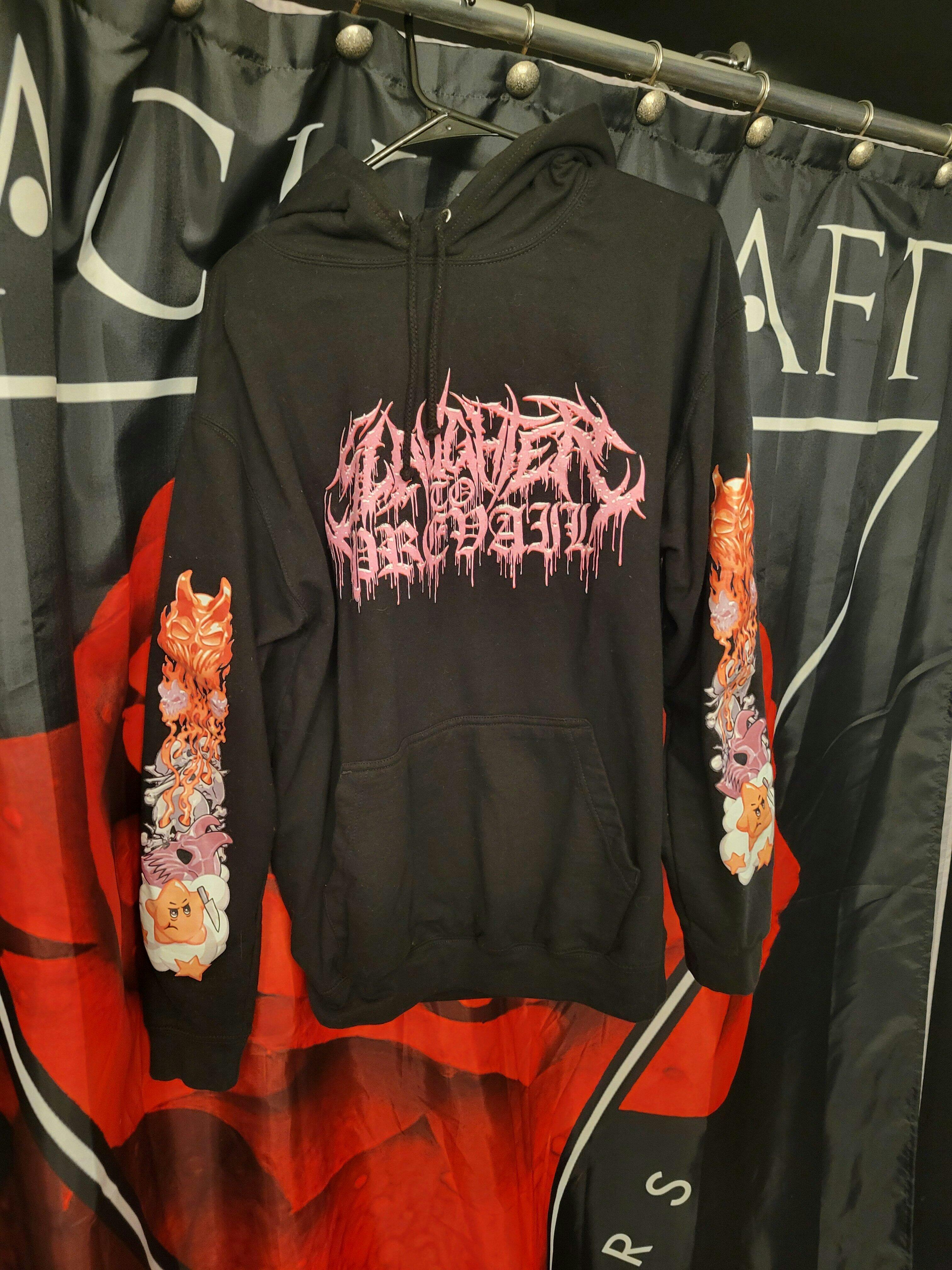 Unleash your inner brutality with this brand new Lord Bear hoodie from Slaughter To Prevail! Featuring a front print of STP logo ,cool backprint, and both sleeve prints, this hoodie is perfect for any fan of extreme metal. The hoodie is soft and comfortable, and the print is high-quality and durable.