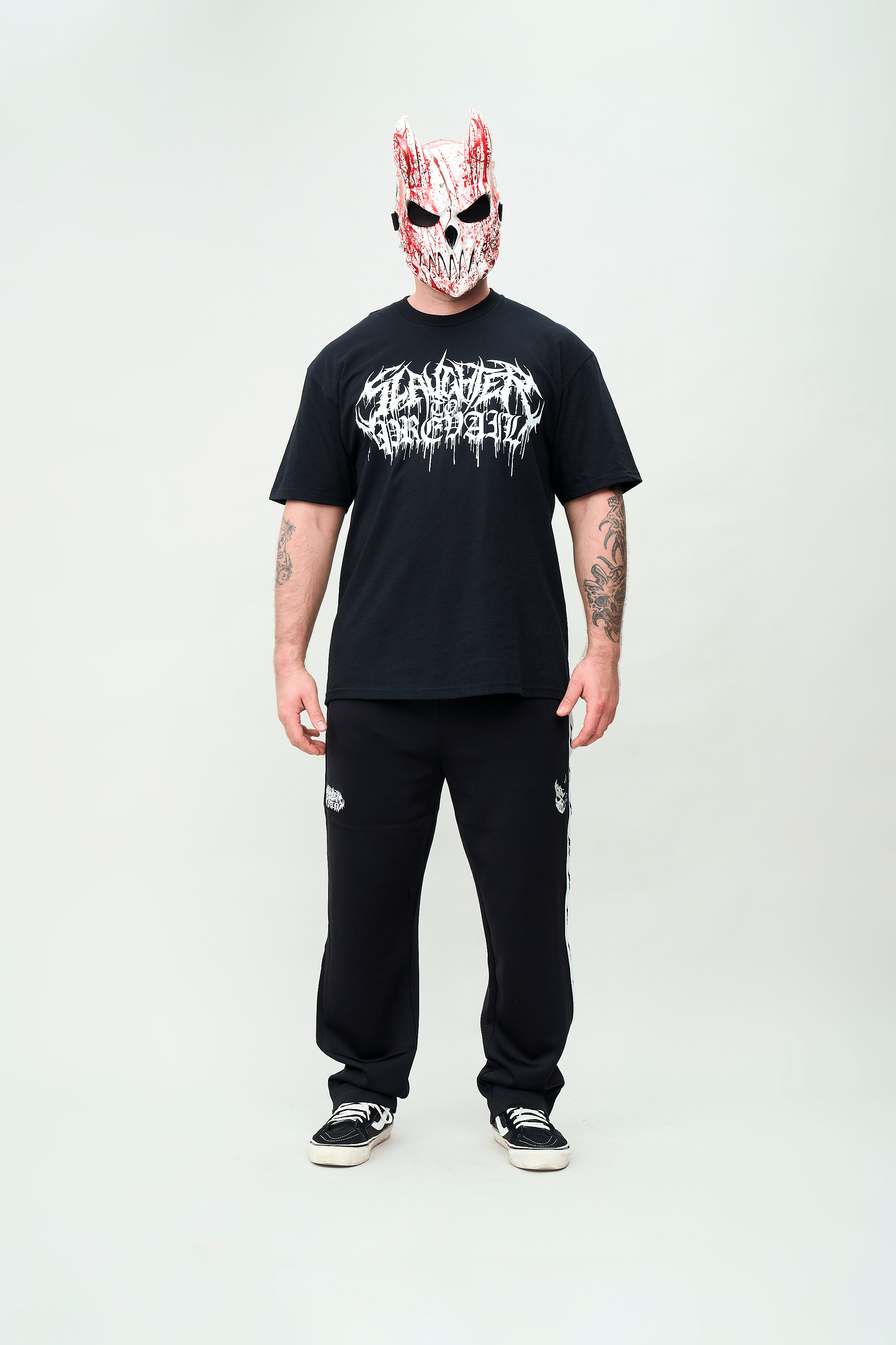 This tee brings the wrath of Slaughter To Prevail to life with a front print of the band’s infamous blood-drip logo and a back hit featuring the demonic red oni mask that’s become a symbol of pure chaos. Horned, sharp-toothed, and soaked in fury, the back graphic radiates unholy dominance.
