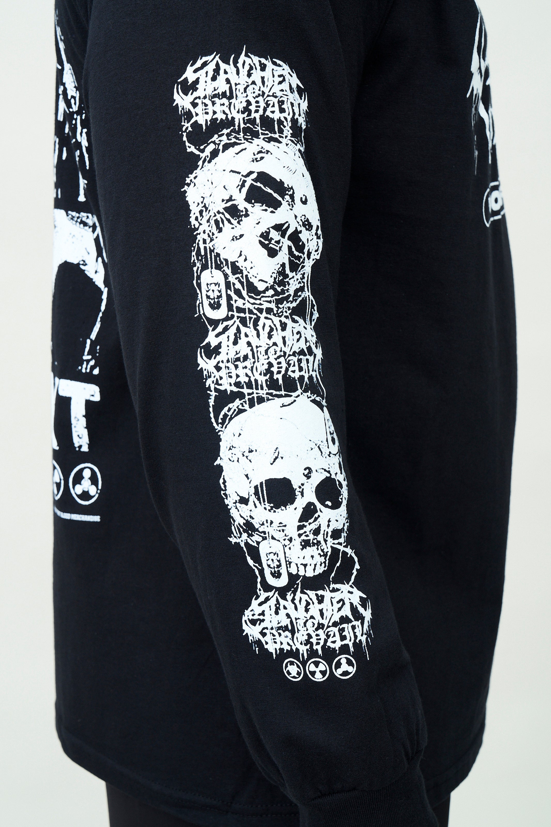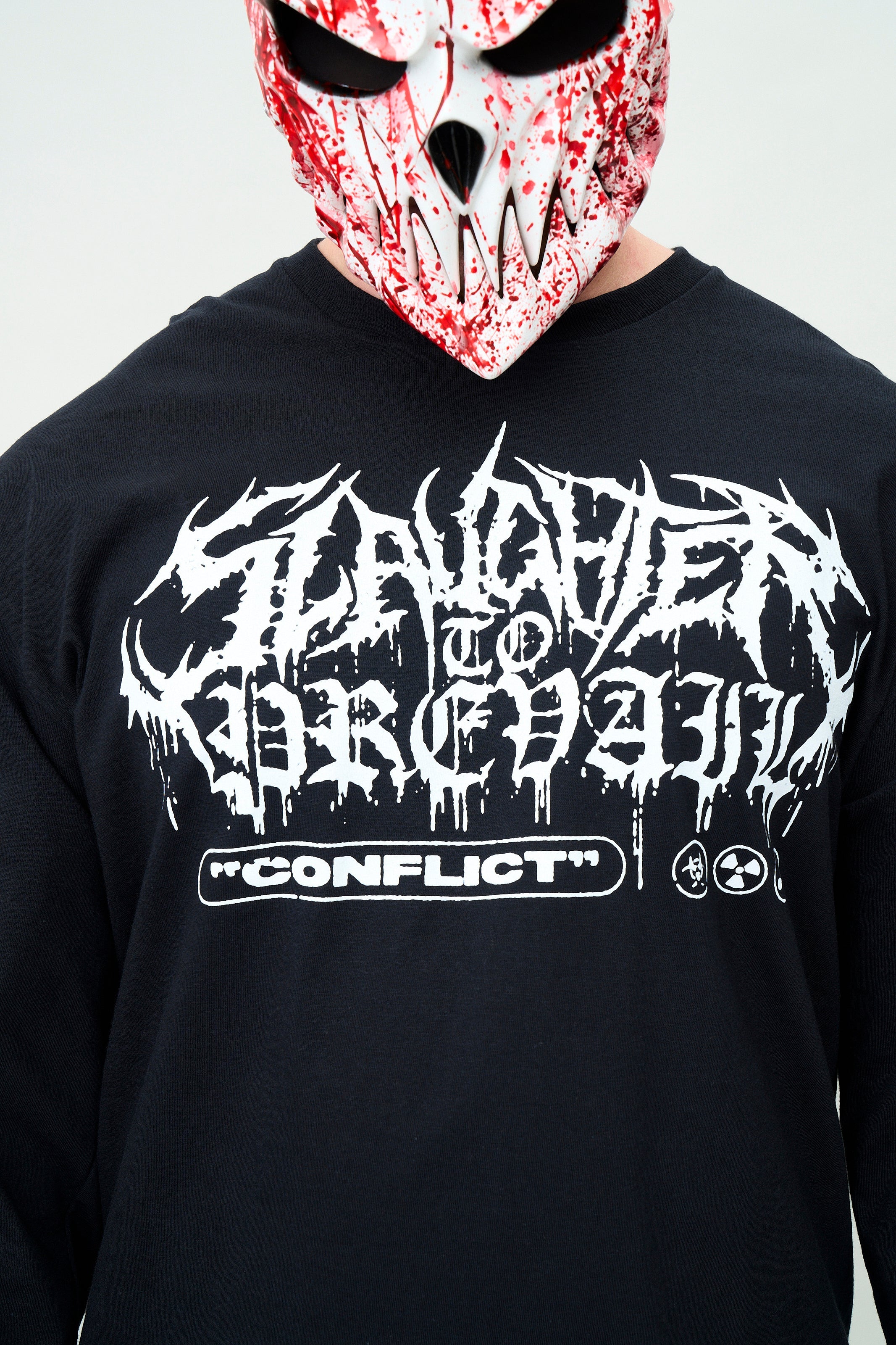 Unleash your inner brutality with this brand new conflict longsleeve from Slaughter To Prevail! Featuring a front print of STP logo ,cool backprint, and both sleeve prints, this shirt is perfect for any fan of extreme metal. The shirt is soft and comfortable, and the print is high-quality and durable.