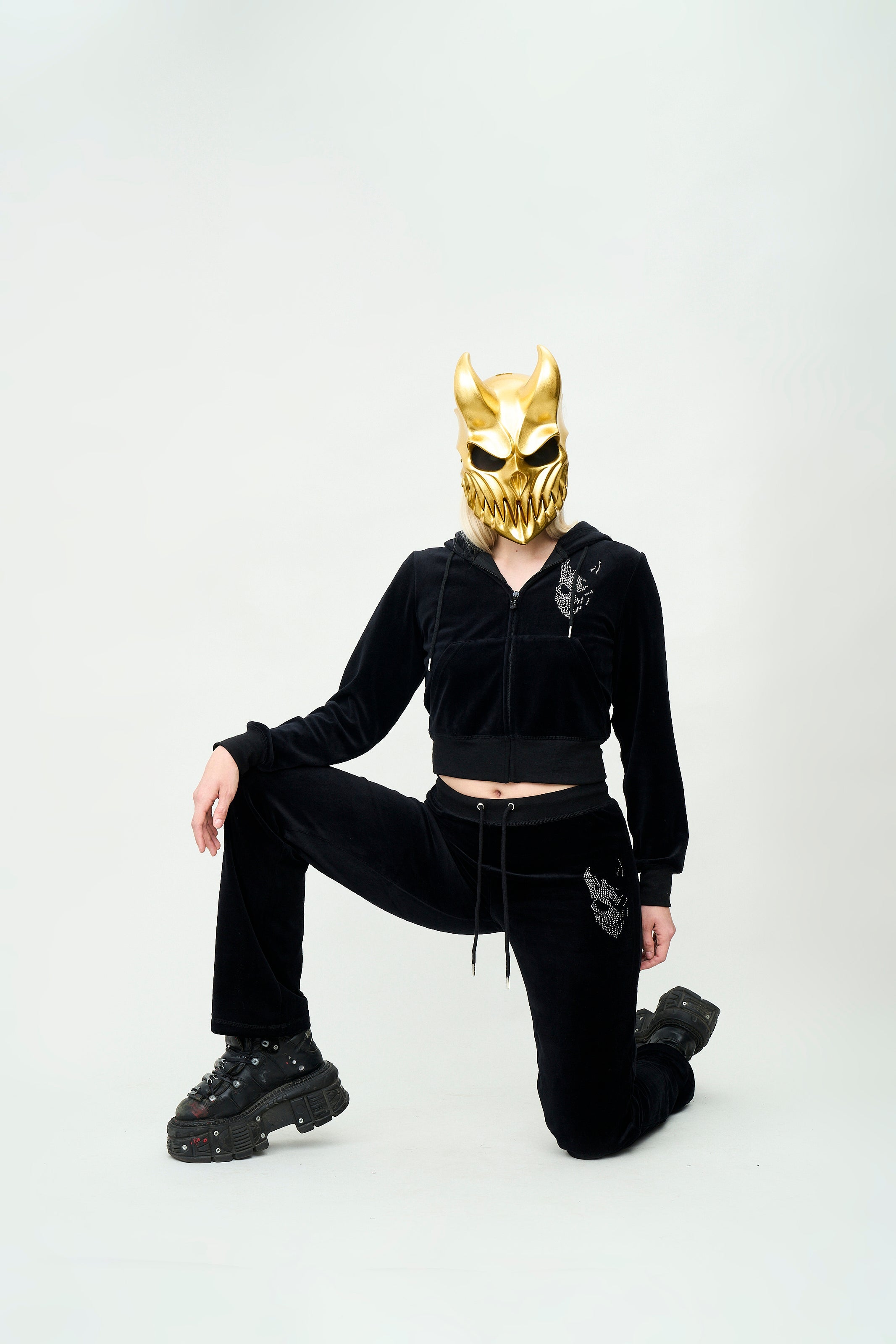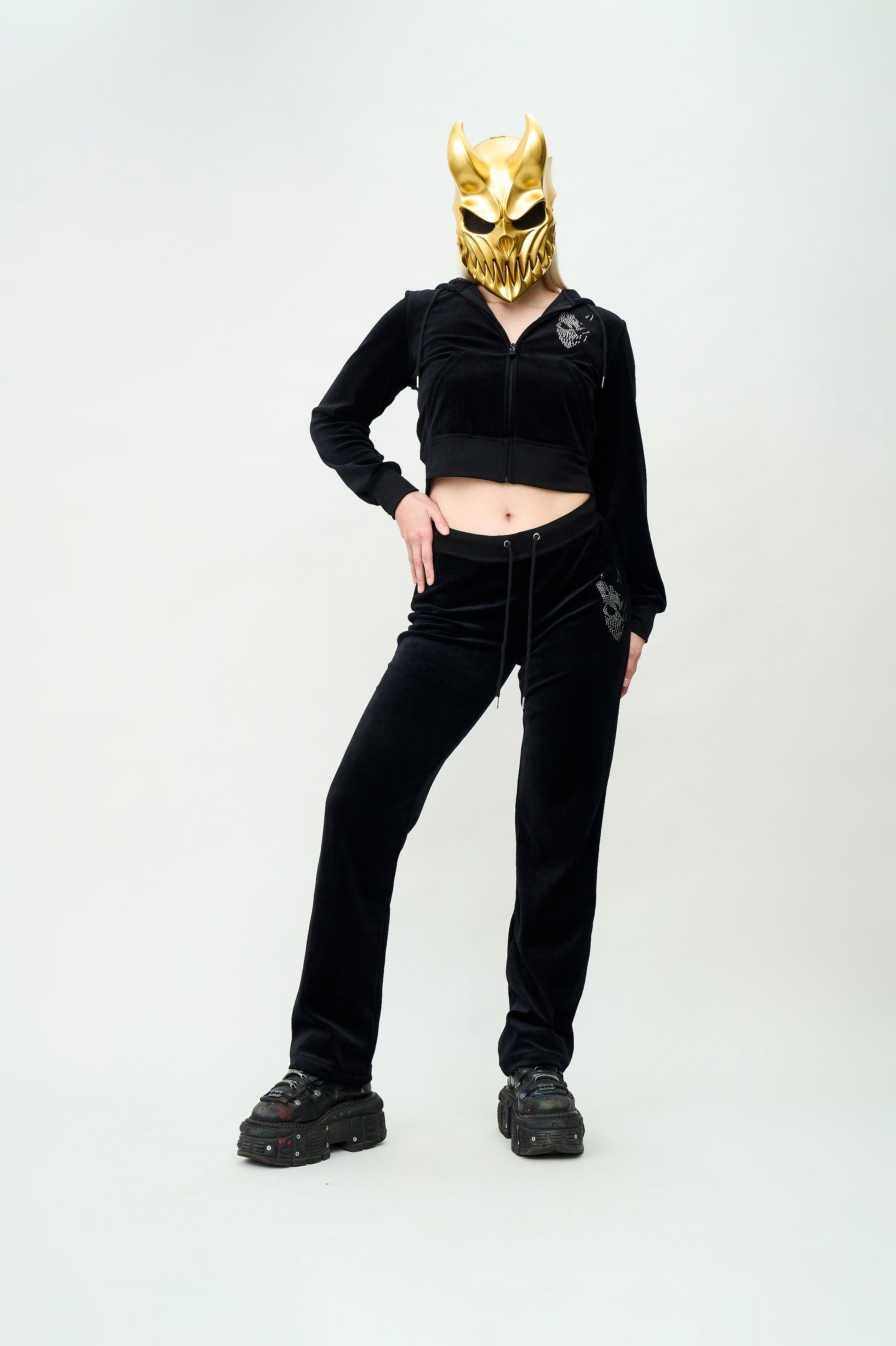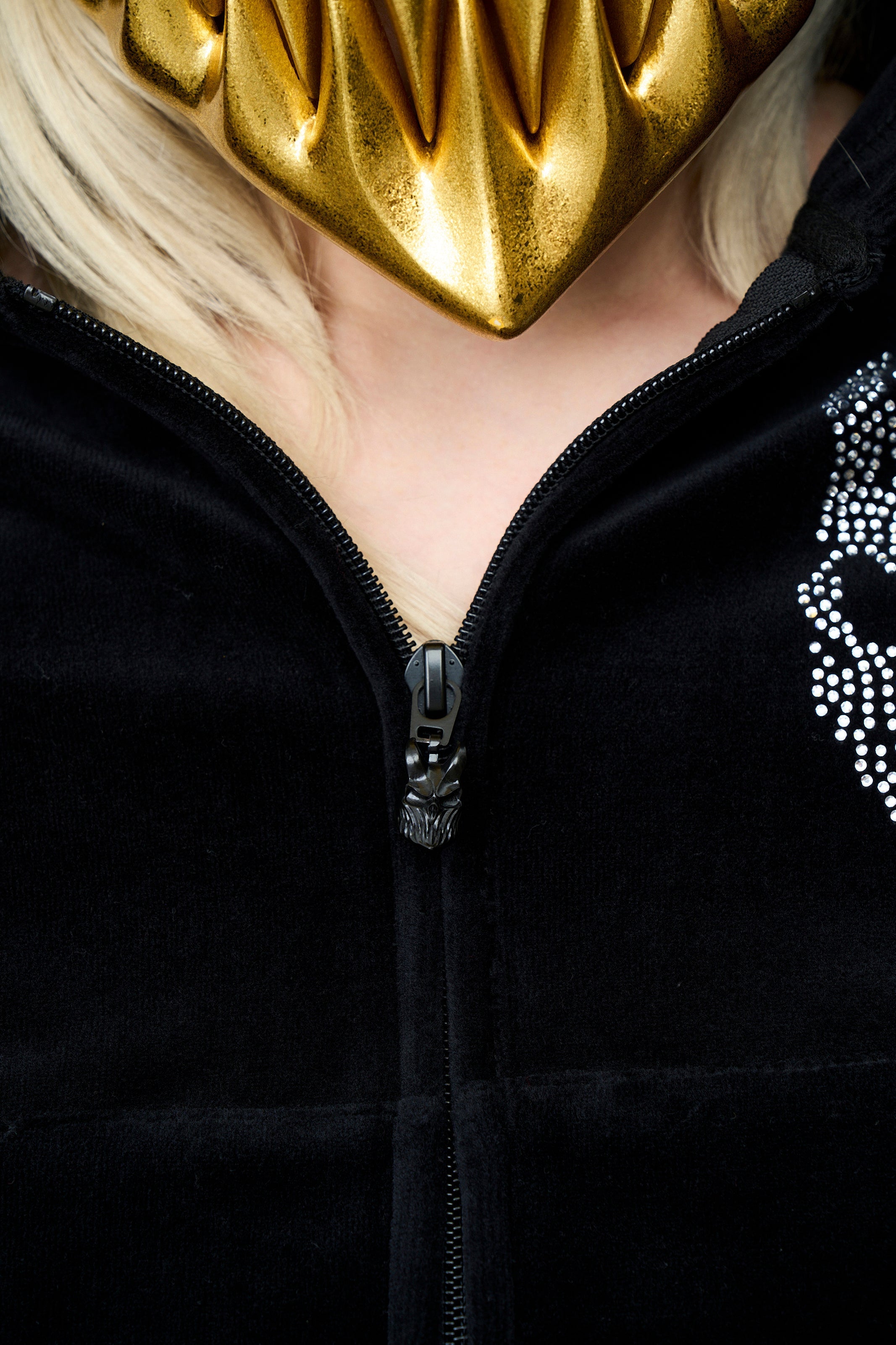Serve Y2K glam with a brutal twist. This plush velour hoodie channels classic Y2K vibes, then detonates them with a gleaming rhinestone Slaughter To Prevail logo that blazes across your shoulder blades—catching every stage light, streetlamp, and camera flash in sight.